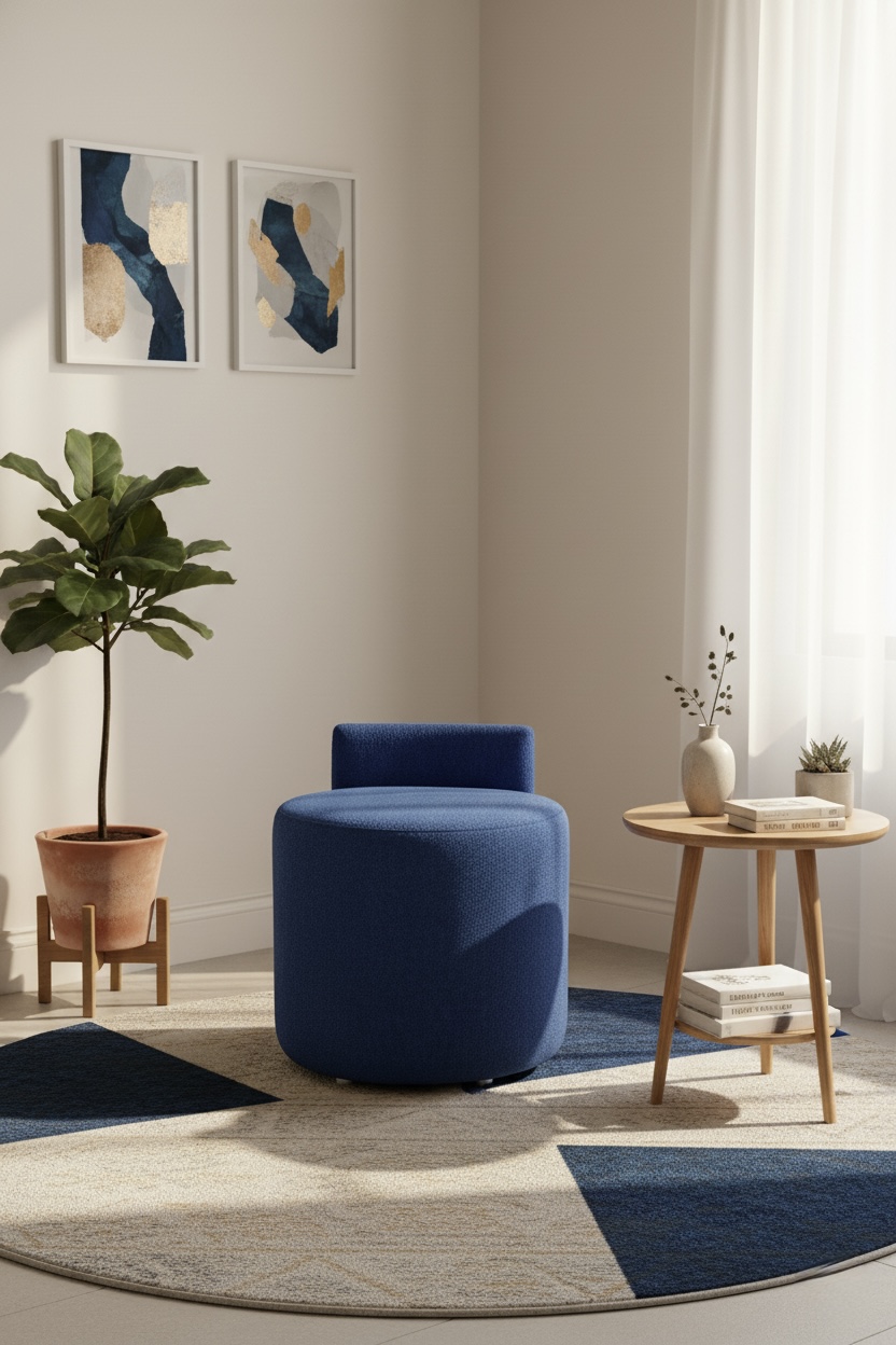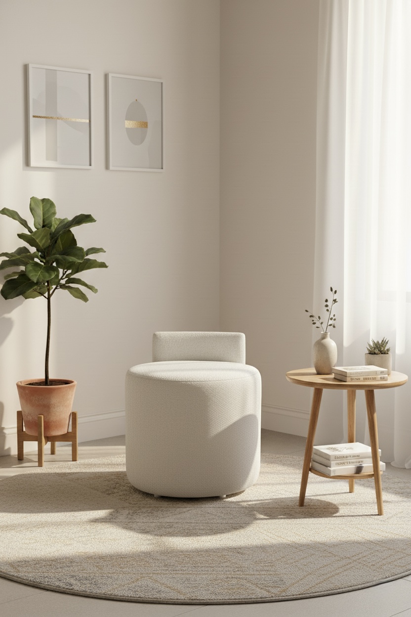 -Valoure presents the Beautee and Perch collection, a study in contemporary luxury defined by tailored lines and sumptuous materiality. These cylindrical poufs are exquisitely upholstered in rich, tactile fabrics, offering a harmonious blend of muted, sophisticated tones. The design is grounded by an elegant brushed brass plinth base, which provides a radiant, luxurious finish and a subtle visual lift to the pieces. The Beautee variant introduces a refined architectural accent with its distinctive half-height back panel, providing gentle support and visual structure. As a versatile pair, these pieces offer flexible, chic occasional seating, beautifully merging geometric clarity with unparalleled luxury to enhance any curated space.