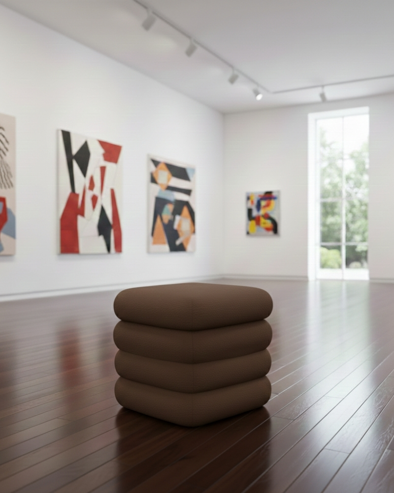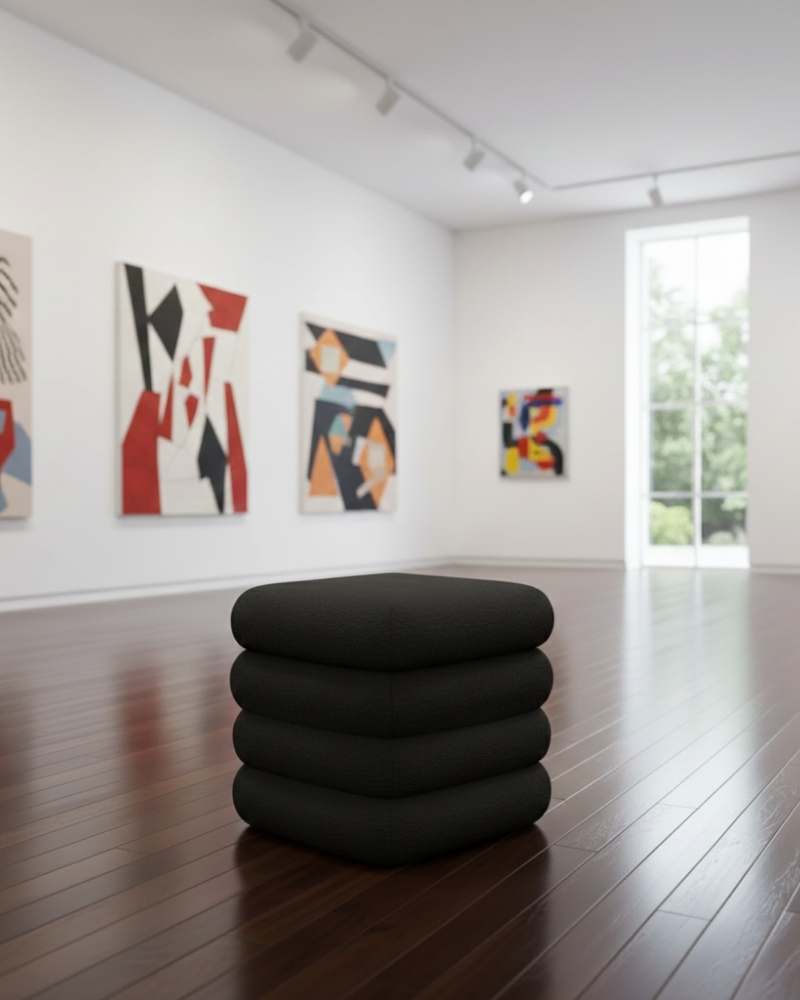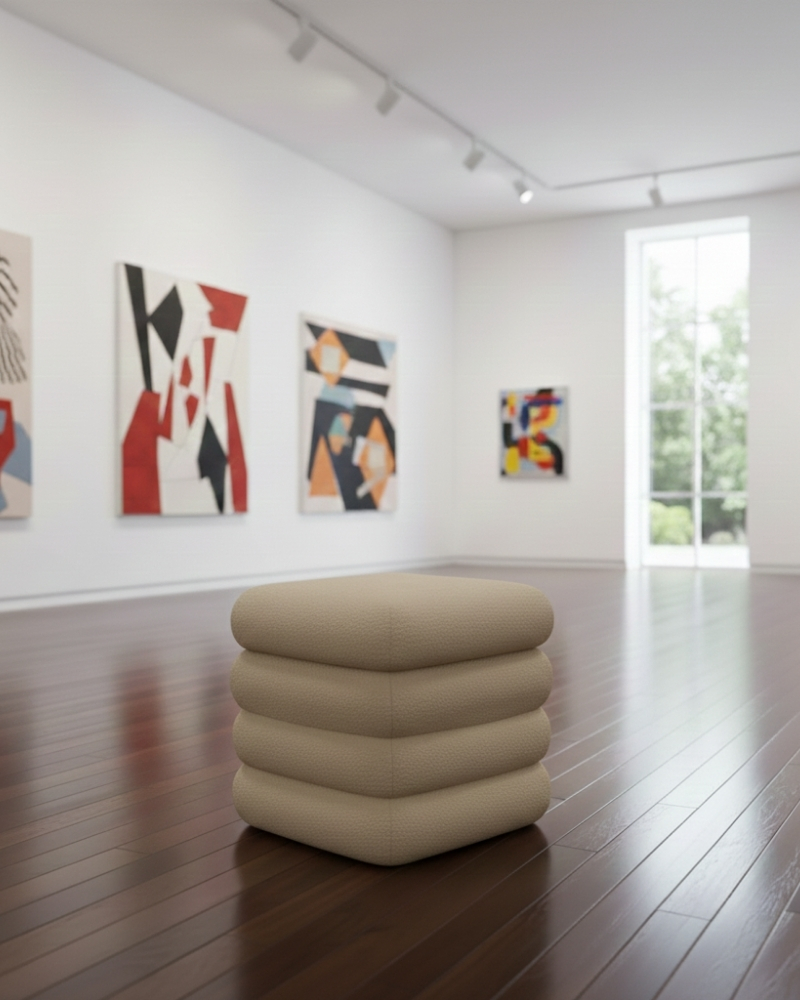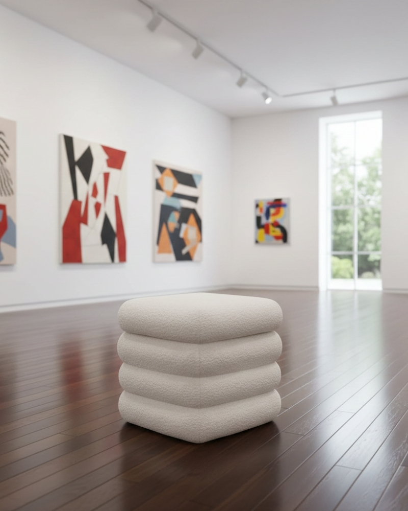 Valoure proudly introduces Muffin, an exceptionally sculptural ottoman that redefines plush comfort with its distinct, layered silhouette. This oversized piece features a deep, square profile, creating the visual effect of four sumptuously stacked cushions for a feeling of ultimate softness. Muffin is entirely enveloped in a rich, high-texture bouclé fabric, offering a cozy yet highly refined aesthetic that immediately softens any room. Its substantial size and unwavering stability make it the perfect versatile centerpiece—serving as a generous footrest, occasional seating, or an elevated coffee table surface. Muffin is where architectural form meets an unparalleled cloud-like luxury.